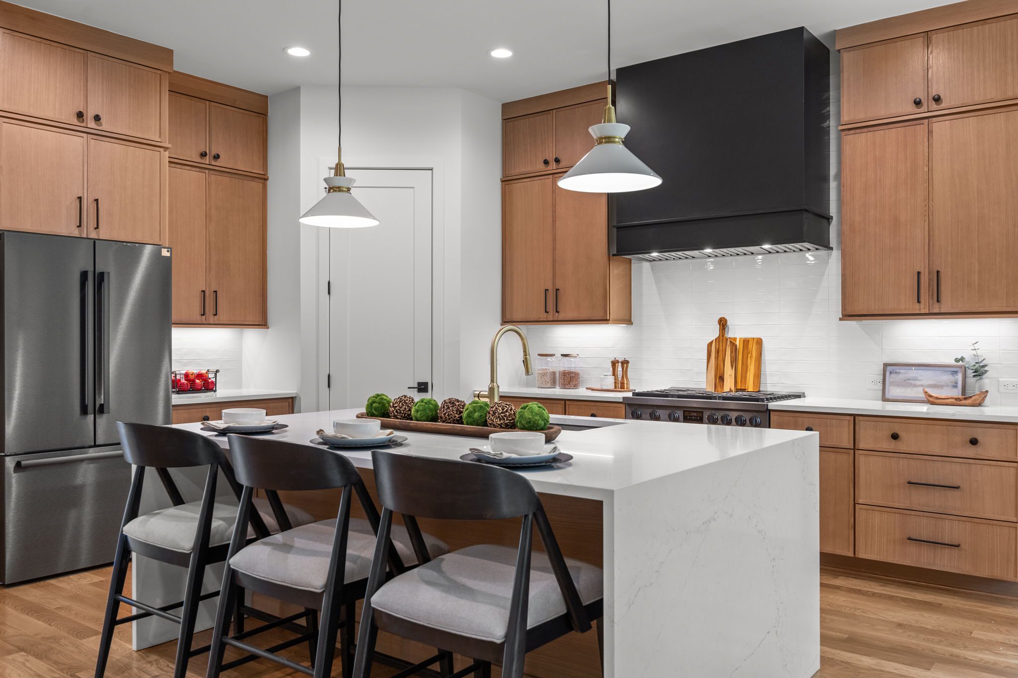 Nestled in the vibrant Belvidere Park neighborhood, this exceptional 2025 Parade of Homes entry by Revolution Homes masterfully blends modern design with everyday functionality. The open-concept main level boasts a spacious family room featuring built-ins and a cozy fireplace, seamlessly connecting to a designer kitchen equipped with black stainless Bosch appliances, quartz countertops with waterfall edges, natural-tone cabinetry extending to the ceiling, a custom hood, and a generous pantry.